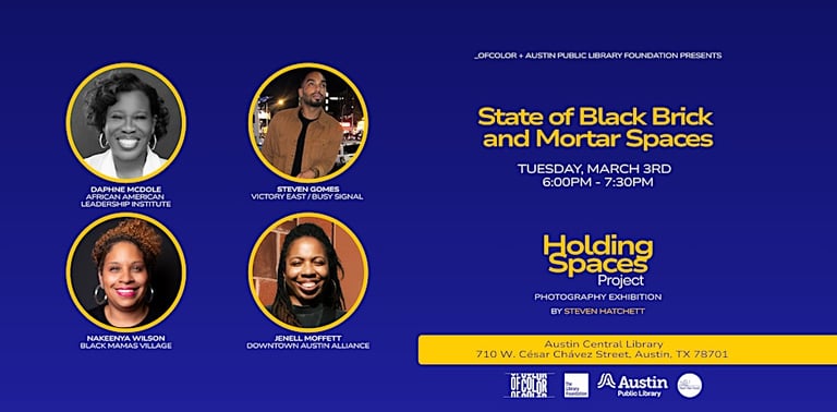 Holding Spaces is a photography-based exhibition documenting Black-owned brick-and-mortar spaces and the people who sustain them in Austin.